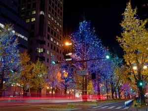 Illumination of Midosuji Avenue in Osaka