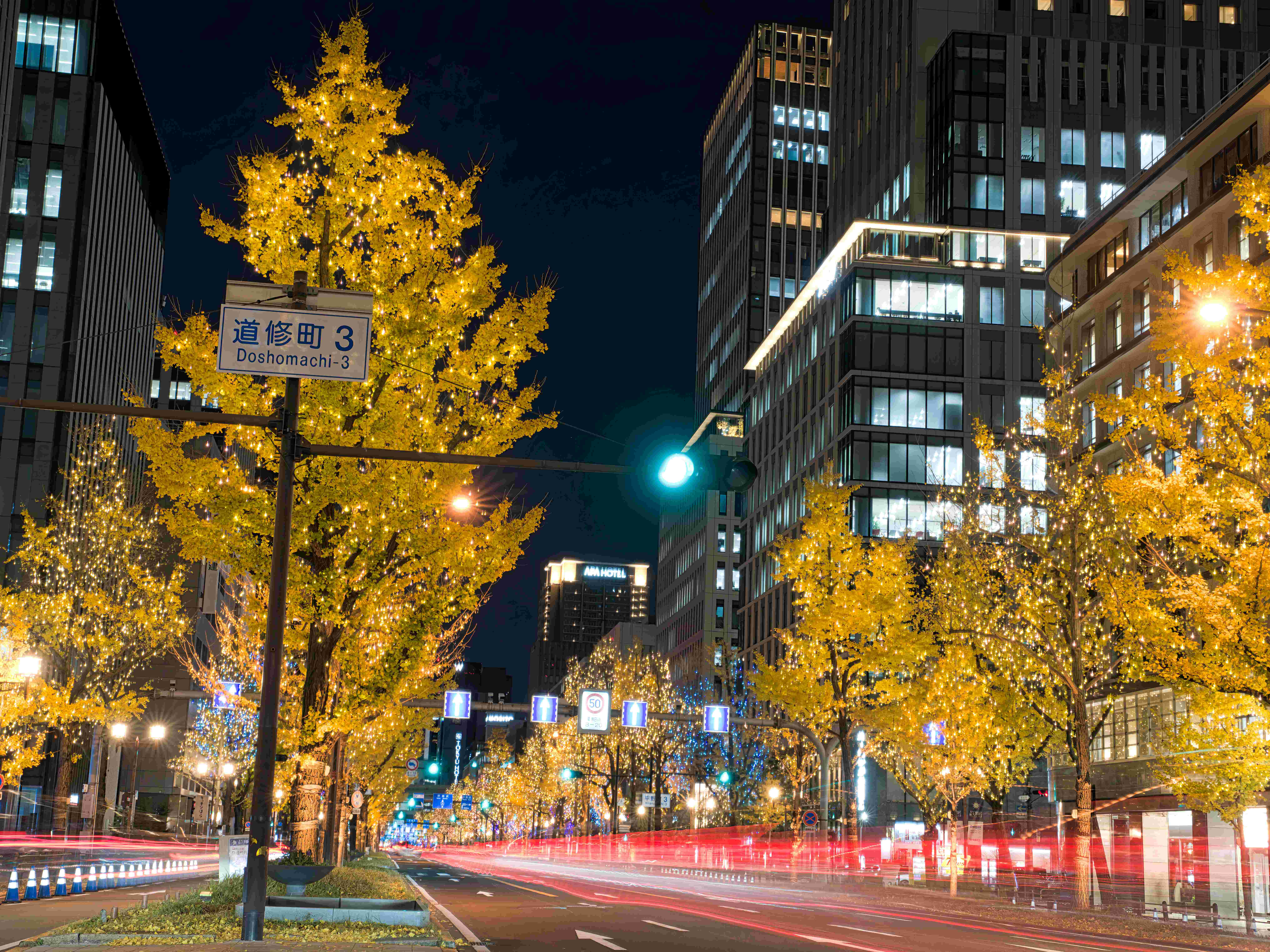 Illumination of Midosuji Avenue in Osaka